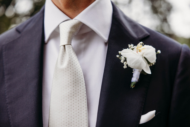 Stoff: Für Sommerhochzeiten empfehlen wir Leinen- oder Woll-Leinen-Mischungen, im Winter luxuriöse Schurwolle oder Kaschmir.
